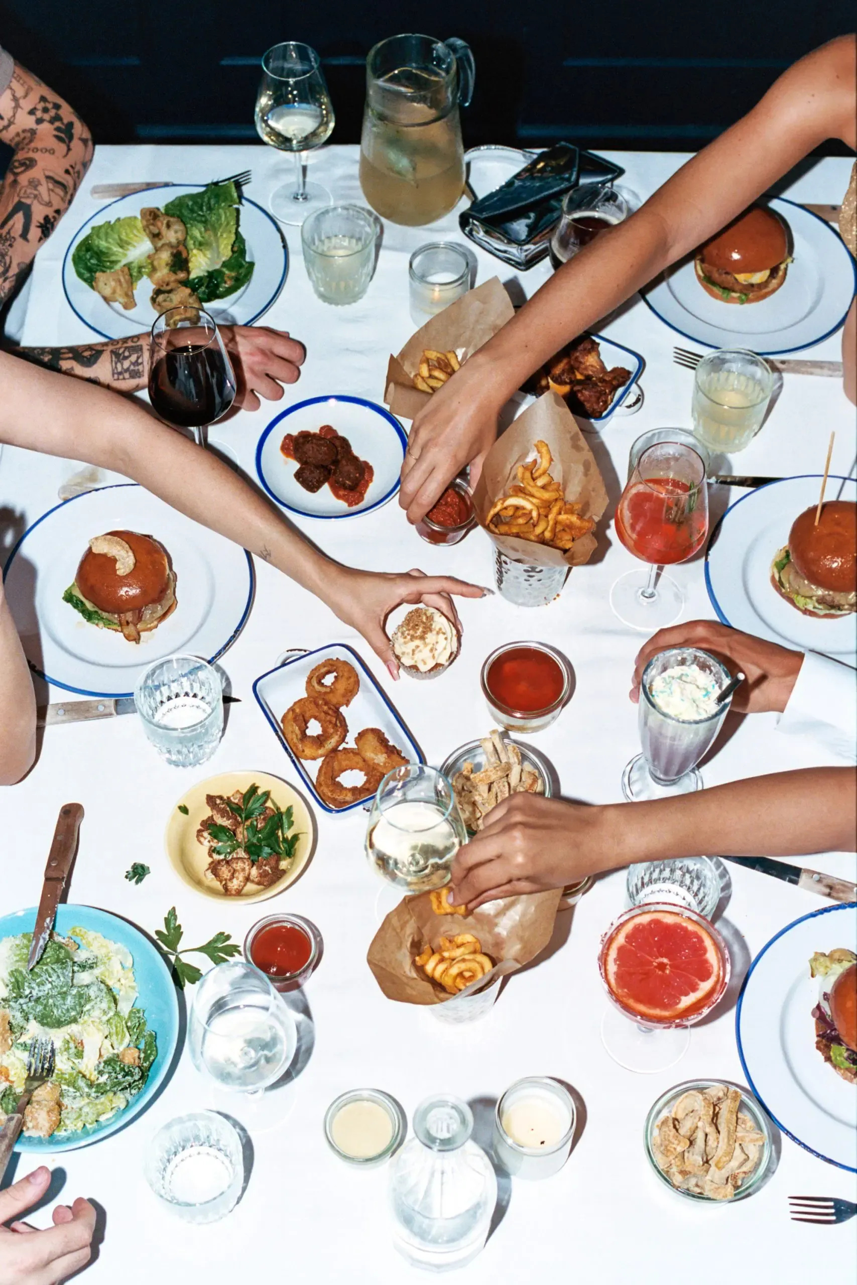 Perfect for sharing! Chicken tenders, onion rings, chicken wings, & sweet potato fries, served with Cocks mayo |